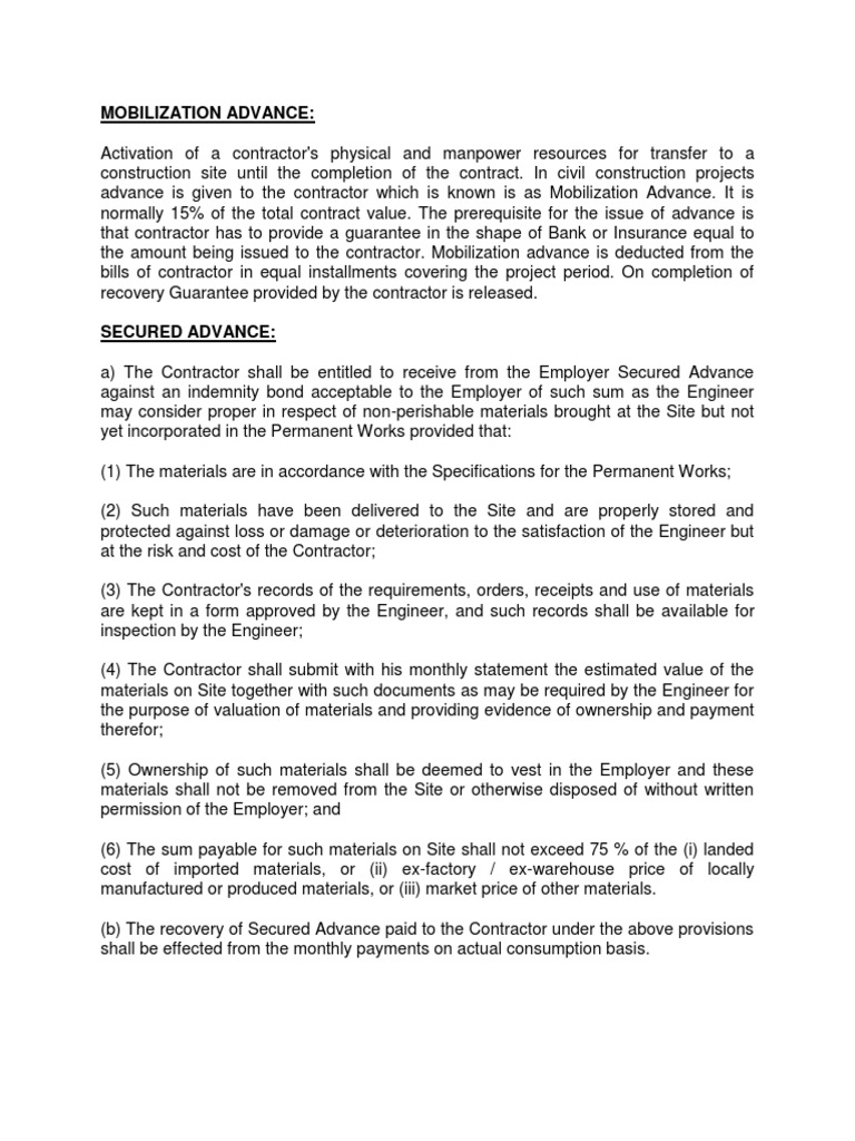 Mobilization Advance And Secured Advance Pdf Guarantee Employment